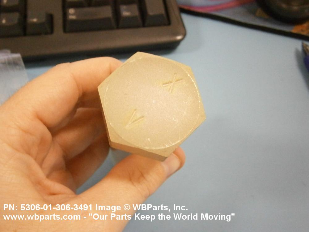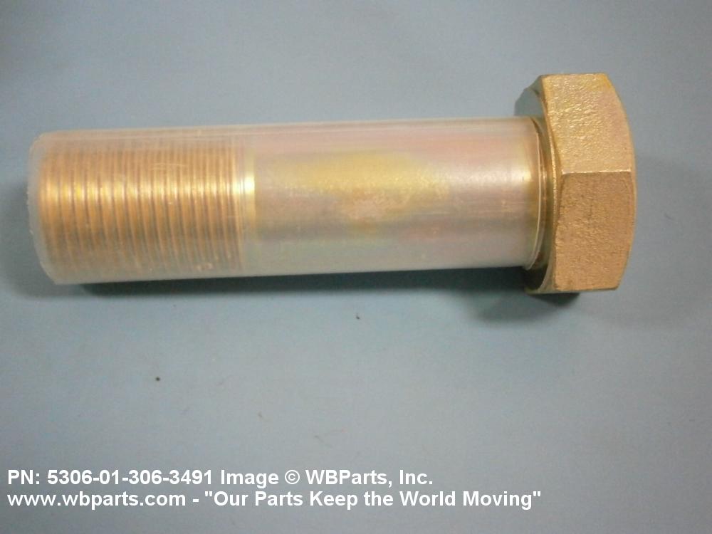 5306-01-306-3491 An externally threaded fastener designed for insertion through holes in assembled parts and normally intended to be tightened or released by torquing a nut. The threaded and unthreaded portions are both of one nominal diameter of 0.190 inch (5 mm) or larger. The head is not designed to be held or driven with an inserted driver or by the thumb and fingers. A locking feature may be incorporated in the design of the head or threads. Head dimensions and sizes of threaded and unthreaded portions shall conform to internationally recognized fastener standards. For items having a grip length portion machined to a tolerance of 0.0015 inch (0.038 mm) or less, BOLT, SHEAR. See also SCREW, CAP, HEXAGON HEAD and SCREW, MACHINE.