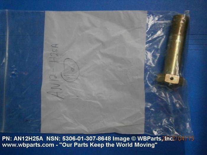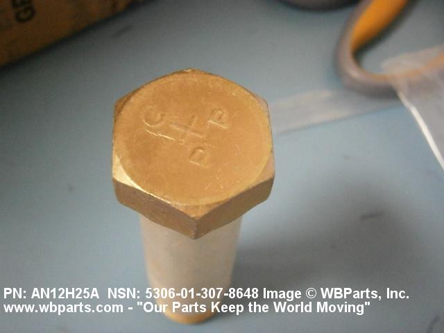 Part Alternates: AN12H25A, 5306-01-307-8648, 01-307-8648, 5306013078648, 013078648