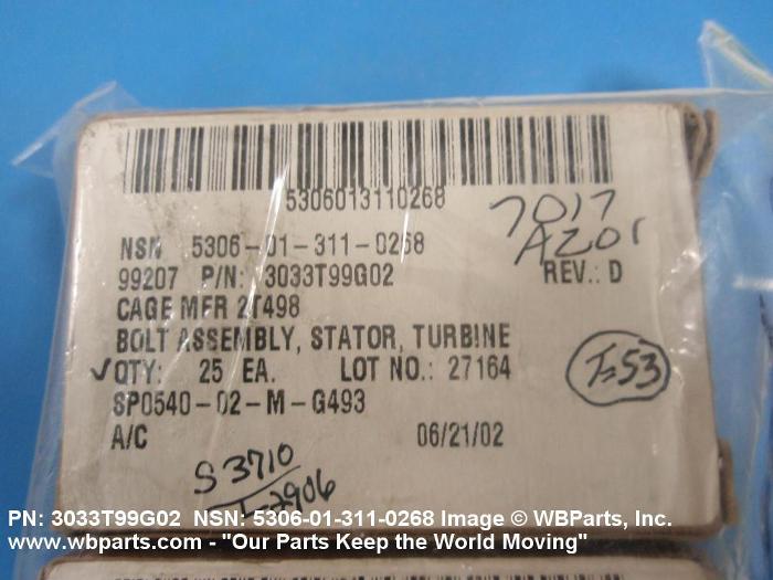 Part Alternates: 3033T99G02, 5306-01-311-0268, 01-311-0268, 5306013110268, 013110268