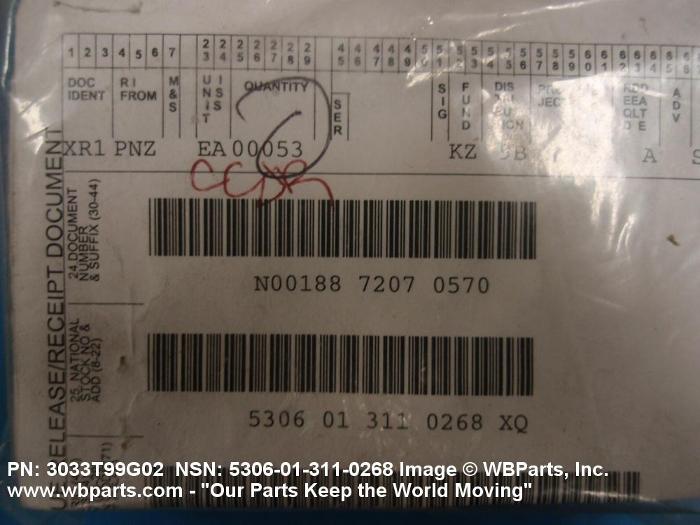 NSN 5306-01-311-0268 3033T99G02, 01-311-0268, 013110268