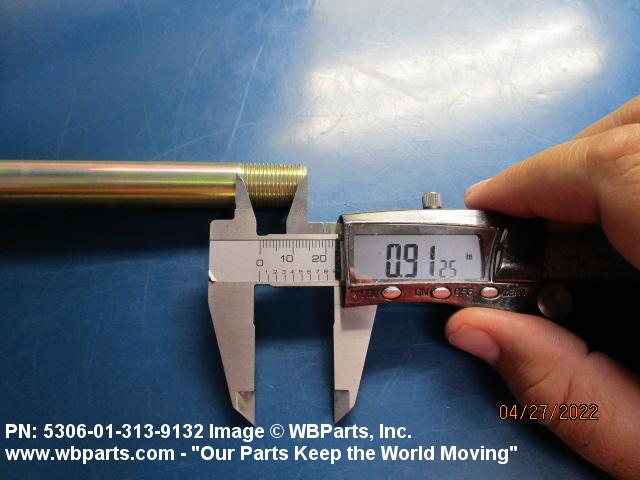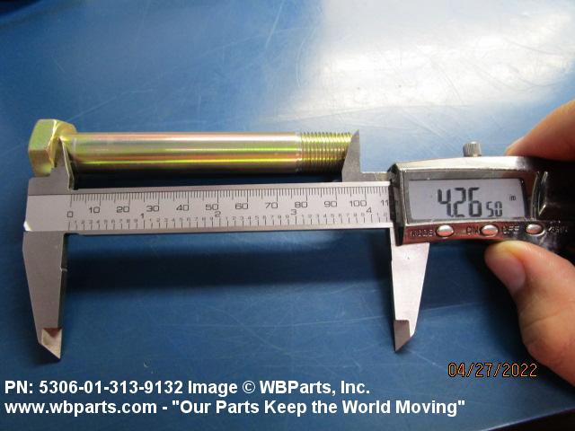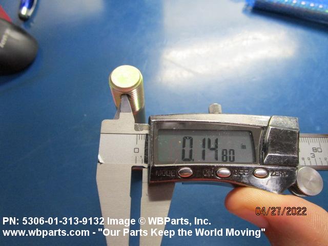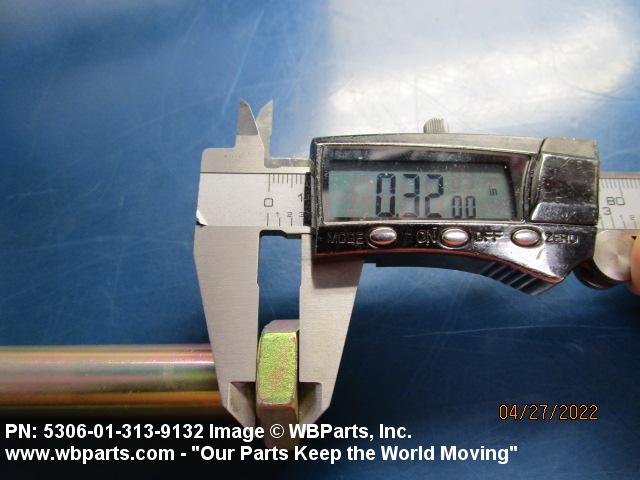5306-01-313-9132 A high strength, 160,000 pounds per square inch (1100 megapascals) minimum tensile strength externally threaded fastener designed for use in applications involving great shear stress. The head is designed to accommodate an external wrench or driver. The head is not designed to be held or driven with an inserted driver, nor is it designed for rotation by the thumb and fingers. The unthreaded portion is of specific grip length, plated or unplated, and is machined to a tolerance of one thousandth (0.001) of an inch (0.025 mm) or less of a specific diameter for items one inch (25 mm) or less in diameter. Items over one inch (25 mm) in diameter shall have a tolerance of fifteen ten thousandths (0.0015) of an inch (0.038 mm) or less. The nominal major diameter of the threads shall be at least one thousandth (0.001) of an inch (0.025 mm) below the minimum shank diameter, but not below the minimum major diameter for applicable class of fit, as shown in the Screw Thread Standards, FED STD H28 and/or other nationally recognized standards. A locking feature may be incorporated in the design of the head or threads. See BOLT, MACHINE and BOLT, CLEVIS.