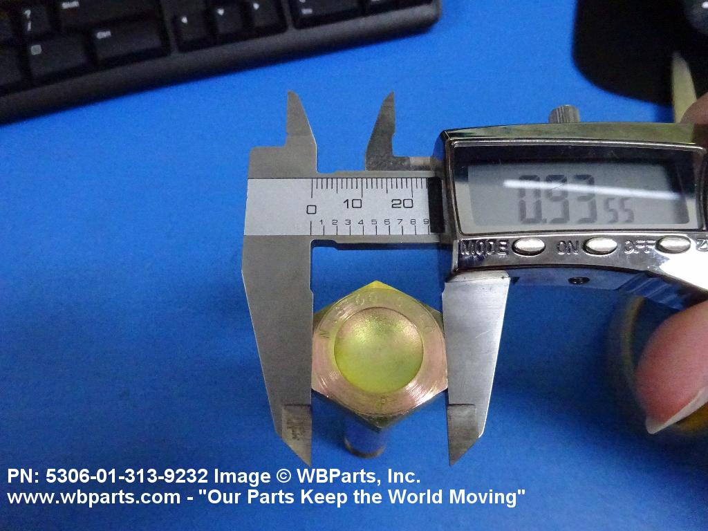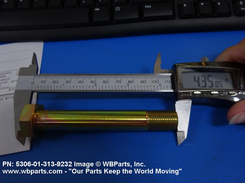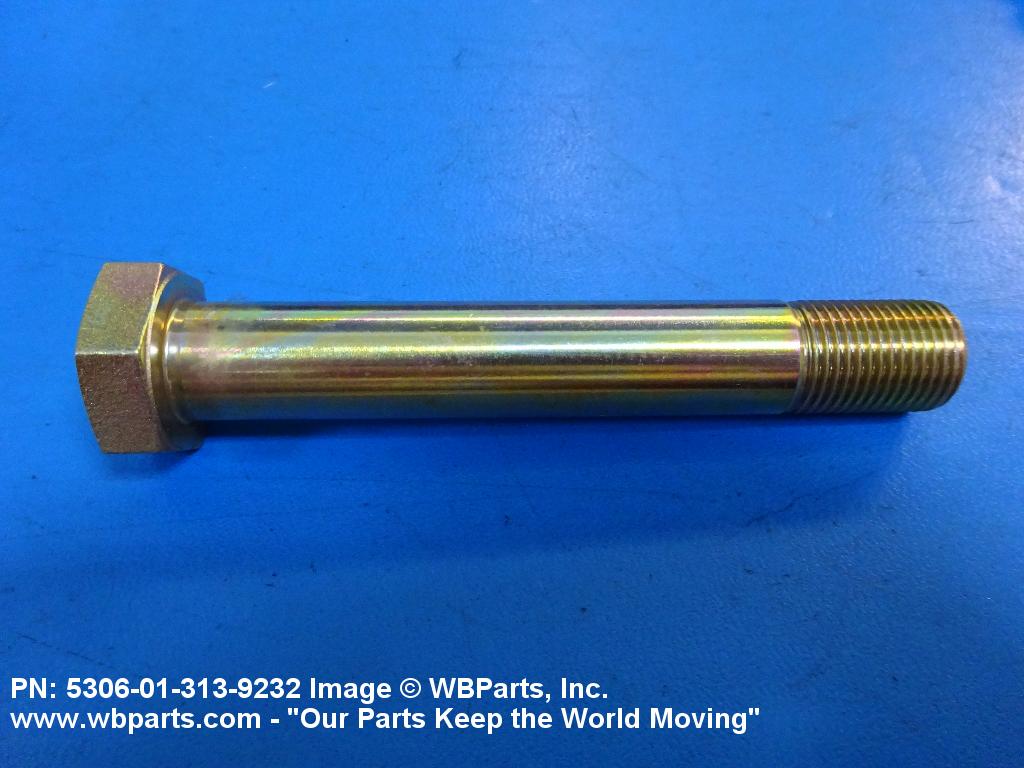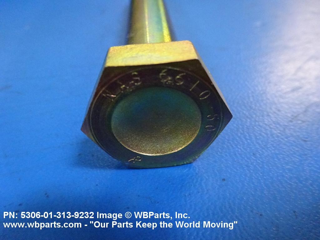 5306-01-313-9232 A high strength, 160,000 pounds per square inch (1100 megapascals) minimum tensile strength externally threaded fastener designed for use in applications involving great shear stress. The head is designed to accommodate an external wrench or driver. The head is not designed to be held or driven with an inserted driver, nor is it designed for rotation by the thumb and fingers. The unthreaded portion is of specific grip length, plated or unplated, and is machined to a tolerance of one thousandth (0.001) of an inch (0.025 mm) or less of a specific diameter for items one inch (25 mm) or less in diameter. Items over one inch (25 mm) in diameter shall have a tolerance of fifteen ten thousandths (0.0015) of an inch (0.038 mm) or less. The nominal major diameter of the threads shall be at least one thousandth (0.001) of an inch (0.025 mm) below the minimum shank diameter, but not below the minimum major diameter for applicable class of fit, as shown in the Screw Thread Standards, FED STD H28 and/or other nationally recognized standards. A locking feature may be incorporated in the design of the head or threads. See BOLT, MACHINE and BOLT, CLEVIS.