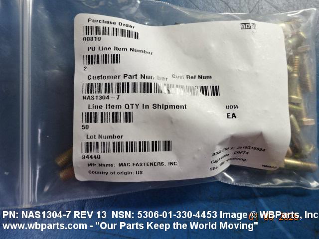 NSN 5306-01-330-4453 NAS13047, NAS1304-7, 10116238