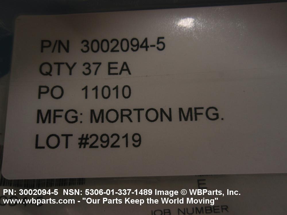 Part Alternates: 30020945, 3002094-5, 5306-01-337-1489, 01-337-1489, 5306013371489, 013371489