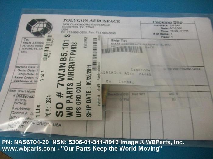 NSN 5306-01-341-8912 NAS670420, NAS6704-20, 01-341-8912