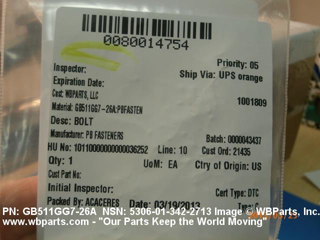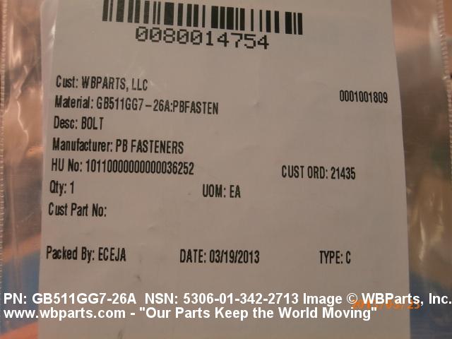NSN 5306-01-342-2713 GB511GG726A, GB511GG7-26A, PBF1479726A