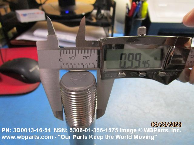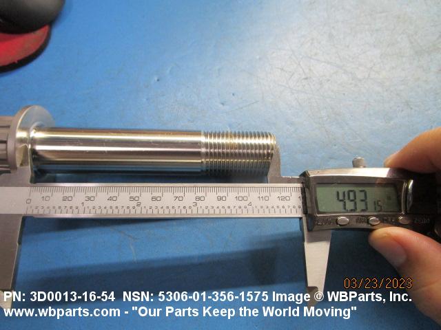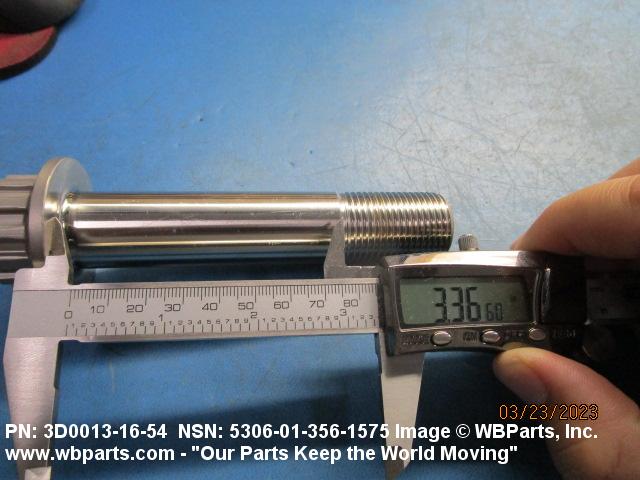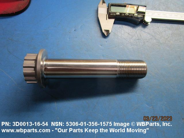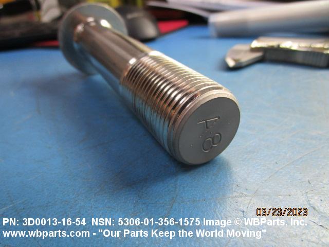 5306-01-356-1575 A high strength, 160,000 pounds per square inch (1100 megapascals) minimum tensile strength externally threaded fastener designed for use in applications involving great shear stress. The head is designed to accommodate an external wrench or driver. The head is not designed to be held or driven with an inserted driver, nor is it designed for rotation by the thumb and fingers. The unthreaded portion is of specific grip length, plated or unplated, and is machined to a tolerance of one thousandth (0.001) of an inch (0.025 mm) or less of a specific diameter for items one inch (25 mm) or less in diameter. Items over one inch (25 mm) in diameter shall have a tolerance of fifteen ten thousandths (0.0015) of an inch (0.038 mm) or less. The nominal major diameter of the threads shall be at least one thousandth (0.001) of an inch (0.025 mm) below the minimum shank diameter, but not below the minimum major diameter for applicable class of fit, as shown in the Screw Thread Standards, FED STD H28 and/or other nationally recognized standards. A locking feature may be incorporated in the design of the head or threads. See BOLT, MACHINE and BOLT, CLEVIS.