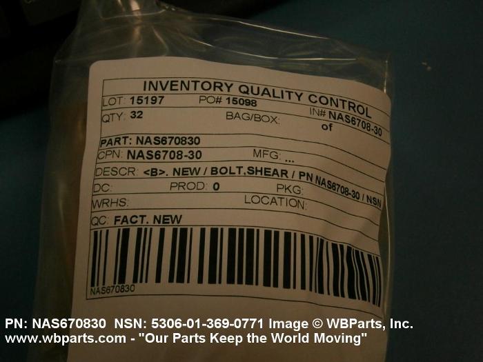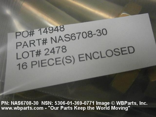 Part Alternates: NAS670830, NAS6708-30, 5306-01-369-0771, 01-369-0771, 5306013690771, 013690771