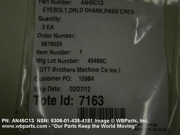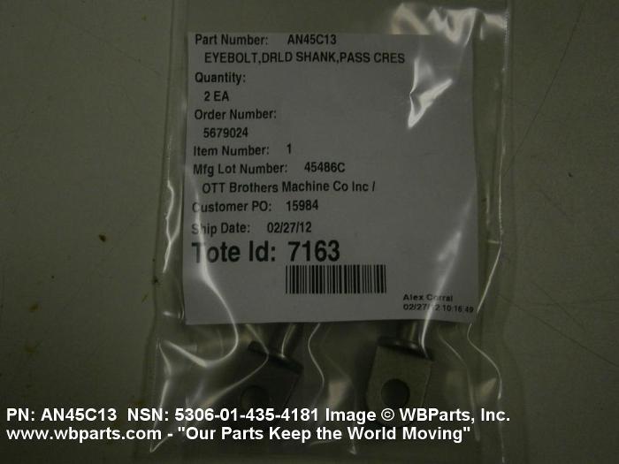 Part Alternates: AN45C13, 5306-01-435-4181, 01-435-4181, 5306014354181, 014354181