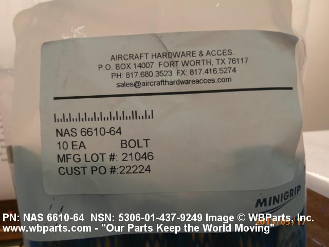 Part Alternates: NAS661064, NAS6610-64, 5306-01-437-9249, 01-437-9249, 5306014379249, 014379249