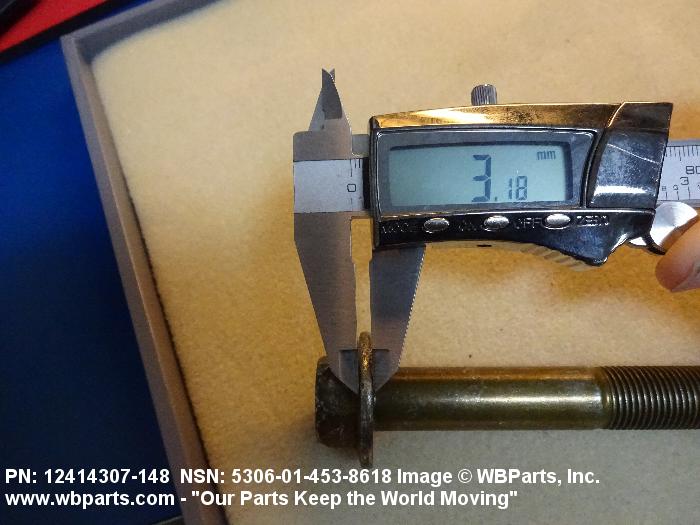 5306-01-453-8618 An externally threaded fastener designed for insertion through holes in assembled parts and normally intended to be tightened or released by torquing a nut. The threaded and unthreaded portions are both of one nominal diameter of 0.190 inch (5 mm) or larger. The head is not designed to be held or driven with an inserted driver or by the thumb and fingers. A locking feature may be incorporated in the design of the head or threads. Head dimensions and sizes of threaded and unthreaded portions shall conform to internationally recognized fastener standards. For items having a grip length portion machined to a tolerance of 0.0015 inch (0.038 mm) or less, BOLT, SHEAR. See also SCREW, CAP, HEXAGON HEAD and SCREW, MACHINE.