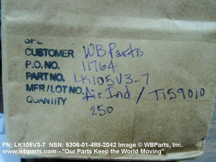 Part Alternates: LK105V37, LK105V3-7, LK109V37, LK109V3-7, 5306-01-488-2042, 01-488-2042, 5306014882042, 014882042