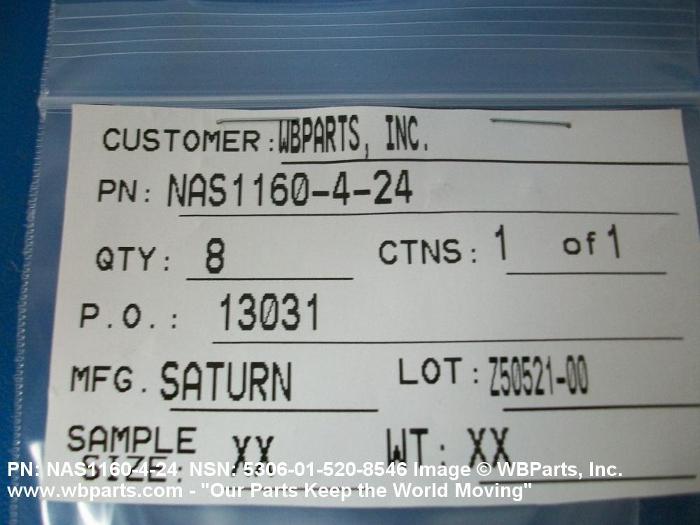 NSN 5306-01-520-8546 NAS1160424, NAS1160-4-24, 01-520-8546