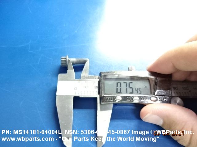 Part Alternates: MS1418104004L, MS14181-04004L, NASM1418104004L, NASM14181-04004L, 5306-01-545-0867, 01-545-0867, 5306015450867, 015450867