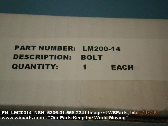 Part Alternates: LM20014, LM-200-14, 5306-01-558-2241, 01-558-2241, 5306015582241, 015582241