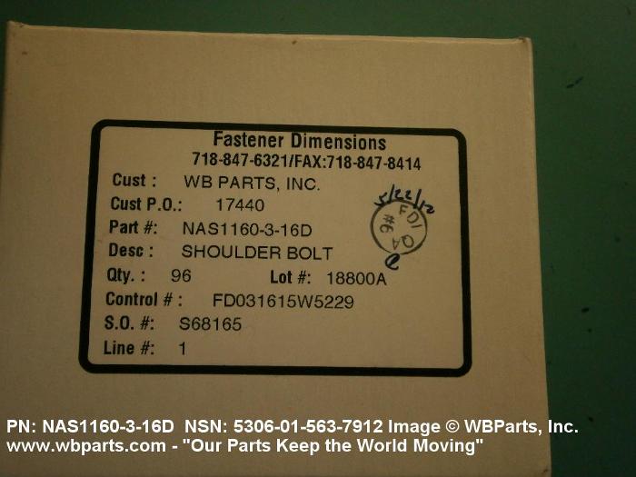 NSN 5306-01-563-7912 NAS1160316D, NAS1160-3-16D, 01-563-7912