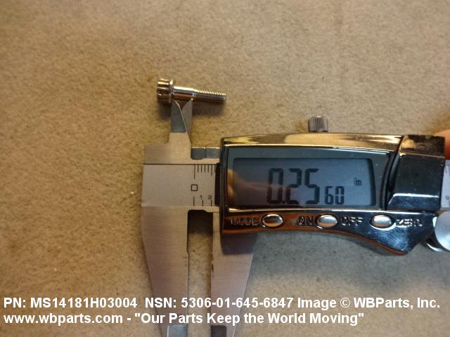 Part Alternates: MS14181H03004 , 5306-01-645-6847, 01-645-6847, 5306016456847, 016456847