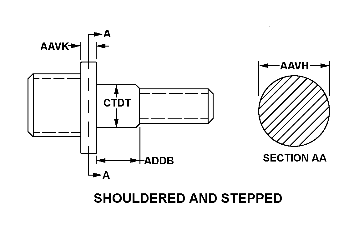 5307-00-151-7272 A headless fastener not exceeding 12 inches (304.8 mm) in length, threaded externally on both ends, on which the nominal diameter of one threaded section is greater than the other. All or part of the unthreaded section is greater than the maximum major diameter of the largest threaded section. It may be thread relieved. Excludes items with tapered threads. See also STUD, LOCKED IN.