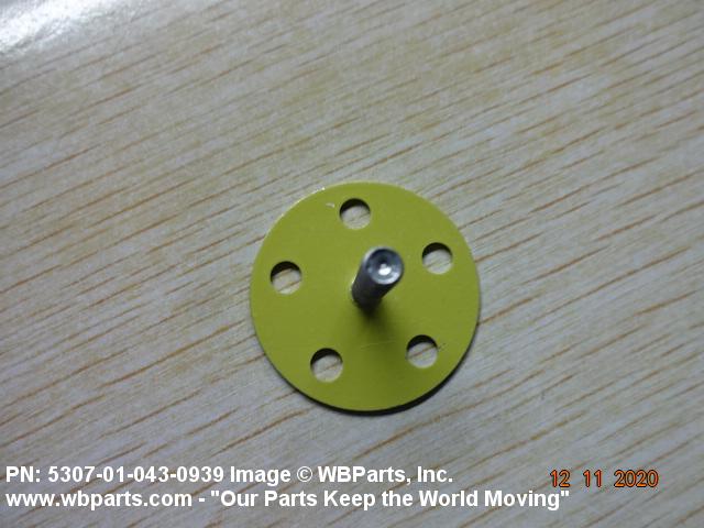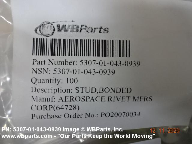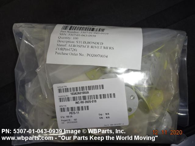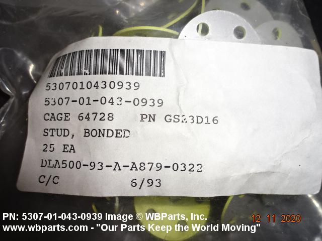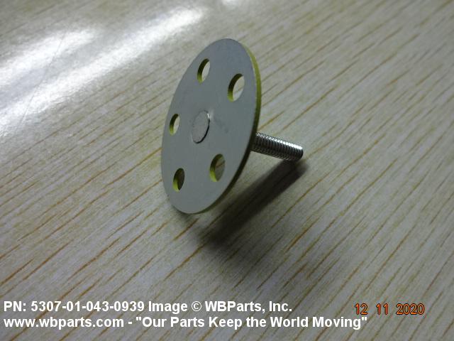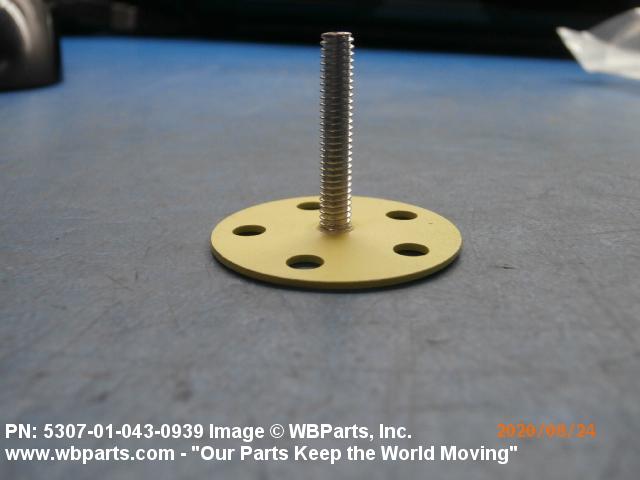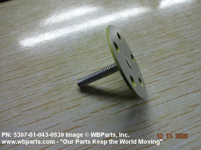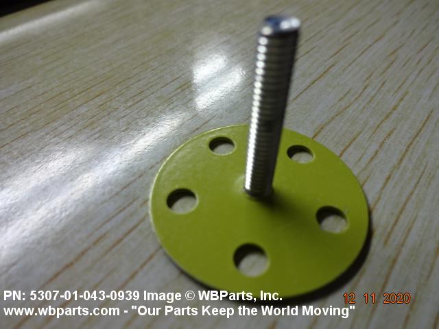 5307-01-043-0939 A headed fastener, externally threaded. The head is intended to be fastened by an adhesive. The head may also be fastened with rivets. The head is not designed to be turned with a wrench or inserted driver.