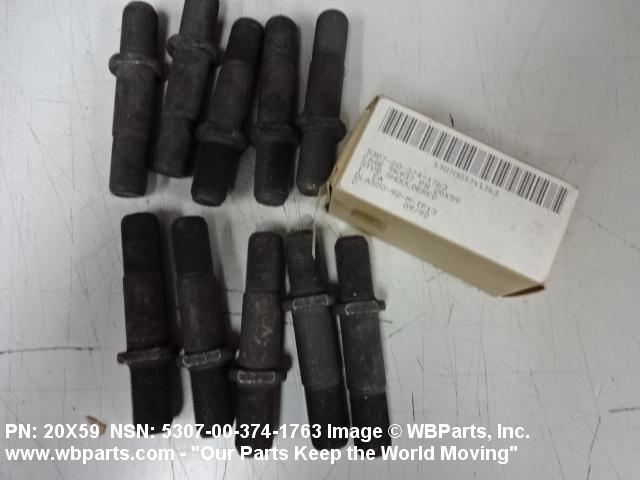 5307-01-075-0378 A headless fastener not exceeding 12 inches (304.8 mm) in length, threaded externally on both ends with threads of the same nominal diameter. All or part of the unthreaded section has a cross-sectional diameter greater than the nominal stud size plus 0.020 inches (0.508 mm). It may be thread relieved. See also STUD, LOCKED IN.