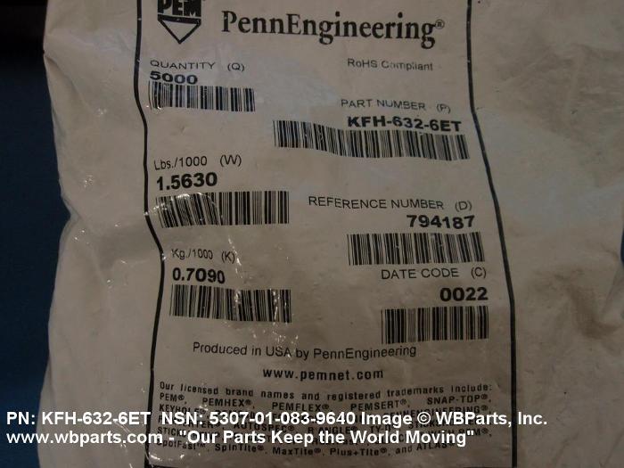 | KFH-632-6 | 46384 | PENN ENGINEERING & MANUFACTURING CORP. |