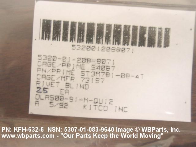 NSN 5307-01-083-9640 C6689, CKFH6326, CKFH-632-6