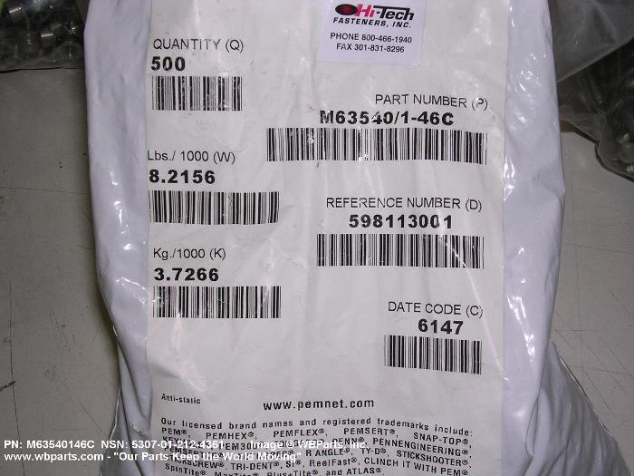 NSN 5307-01-212-4361 M63540/1-46C, M63540146C, NASM36540