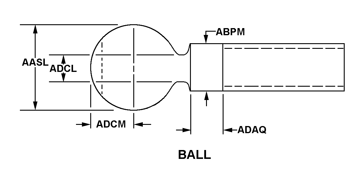 | DISTANCE FROM SPHERICAL HEAD CENTERLINE TO HEAD END | 0.225 INCHES NOMINAL |