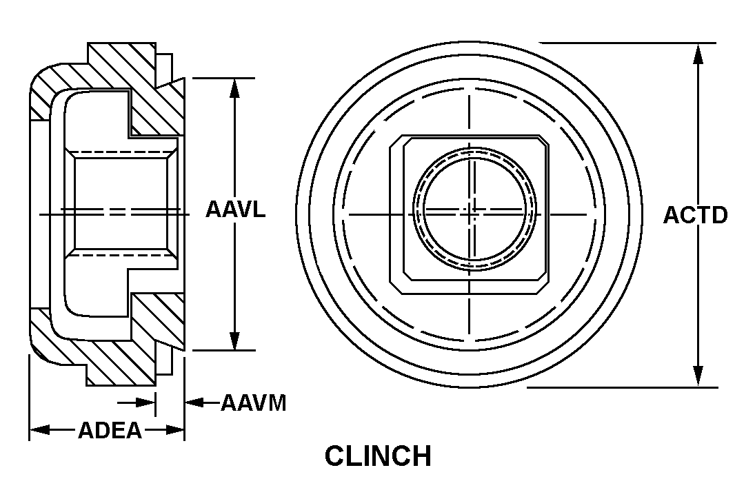 5310-00-003-9409 A nut having a sleeve portion on its under side, which can be crimped or clinched to hold the item in place when inserted in a hole.