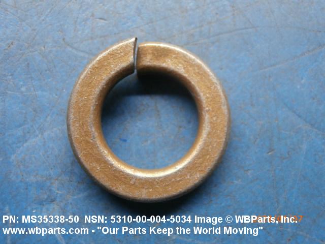 5310-00-004-5034 A washer which is usually round with a centrally located hole. Its edges and two bearing surfaces are so designed that applied pressure brings into play the spring tension and/or frictional locking principle which materially resists any tendency toward turning. It may be made of one or two pieces