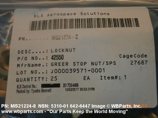 | MS21224-8 | 80205 | NATIONAL AEROSPACE STANDARDS COMMITTEE AEROSPACE INDUSTRIES |