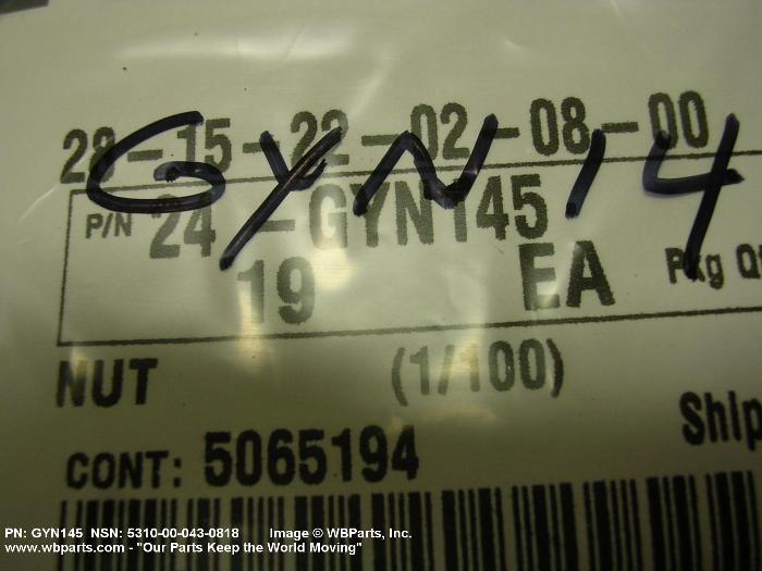 NSN 5310-00-043-0818 GYN145, 00-043-0818, 000430818