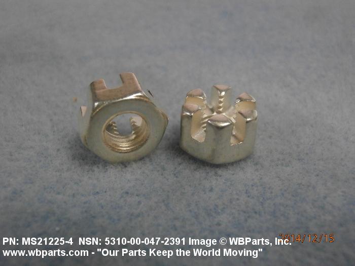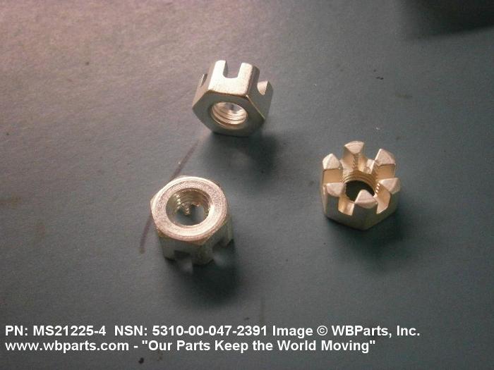 5310-00-047-2391 A nut having a flat bearing surface and 6 flat sides with slots in its upper portion. An integral feature is incorporated for locking on the threads of a mating member. The slots, when used in conjunction with a solid or split (cotter) pin, act as an extra "fail safe", feature in critical applications. Excludes NUT (1), SELF-LOCKING, CASTELLATED, OCTAGON.