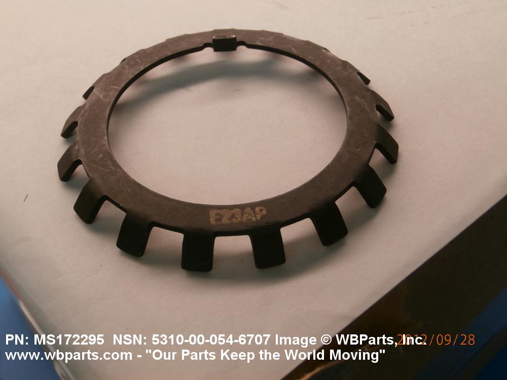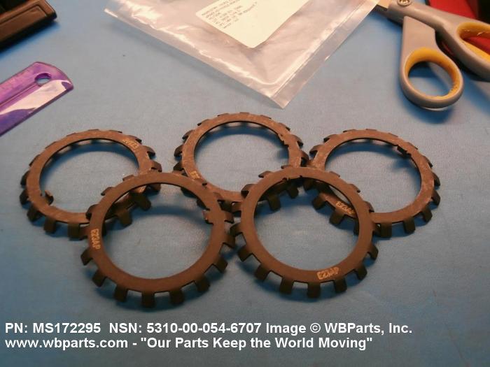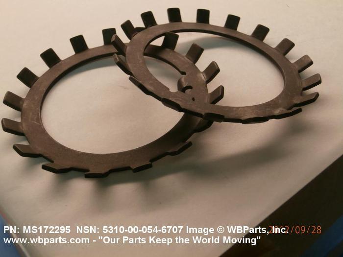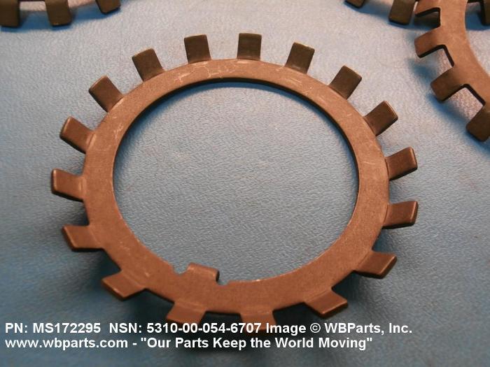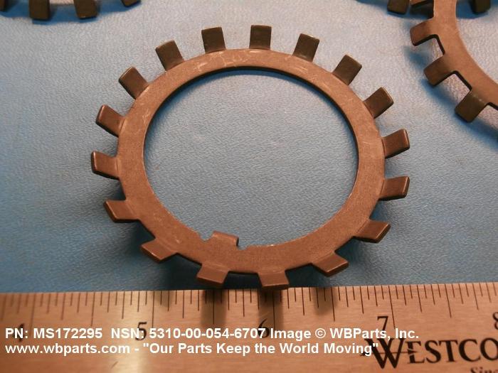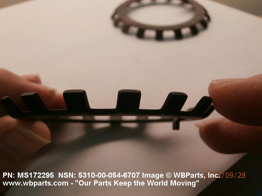 5310-00-054-6707 A washer of nonresilient material usually having two parallel bearing surfaces. The outside and/or inside edges have one or more protuberances. The ends and/or edges may be prebent at any angle or the protuberances may be prebent at any angle to the bearing surfaces. The keys or lugs may be fitted into keyways in adjacent material or they may be bent over after application to hold or lock one or more items in place. Excludes thrust type washer.