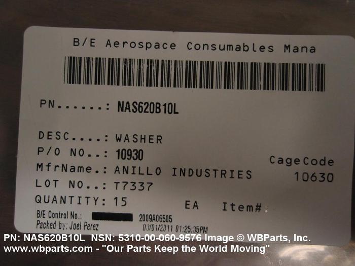 NSN 5310-00-060-9576 NAS620B10L, 10116529 , 3100740510