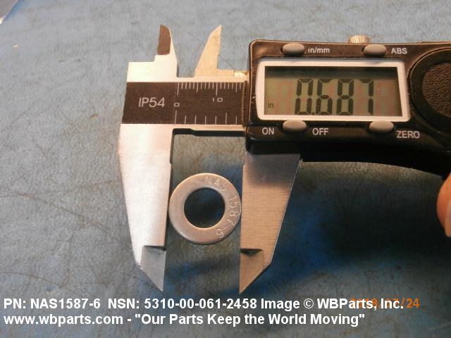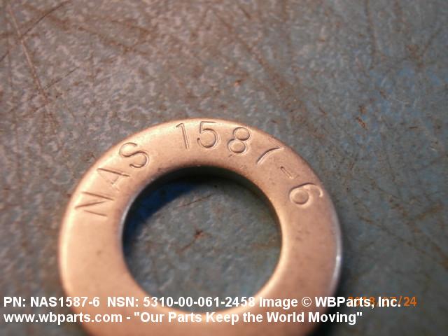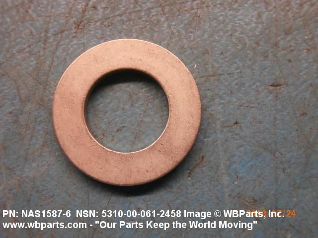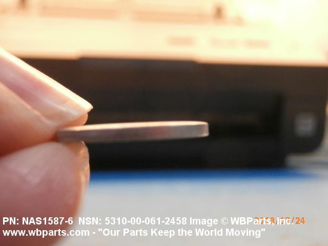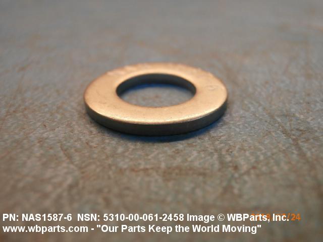 5310-00-061-2458 A washer having a centrally located hole with a solid or laminated cross-section and two flat parallel bearing surfaces. The hole must be 75 percent or less than the largest dimension and the bearing surface finish is greater than 32 microinch (0.8 micrometer). The thickness cannot exceed 25 percent of the largest outside dimension. When the largest outside dimension is less than 1/4 inch or 6mm, the thickness must be 0.006 inches (0.15mm) or greater and for items 1/4 inch (6mm) or larger, the thickness must be 0.016 inches (0.4mm) or greater. The maximum tolerance is applied to dimensions and used as a determining factor. Items with separable lamination use SHIM. For items fabricated from ceramic or electrically rated materials by specification or industry standards use INSULATOR (1), WASHER. Excludes DISK, VALVE, graphite impregnated and lubricated items.