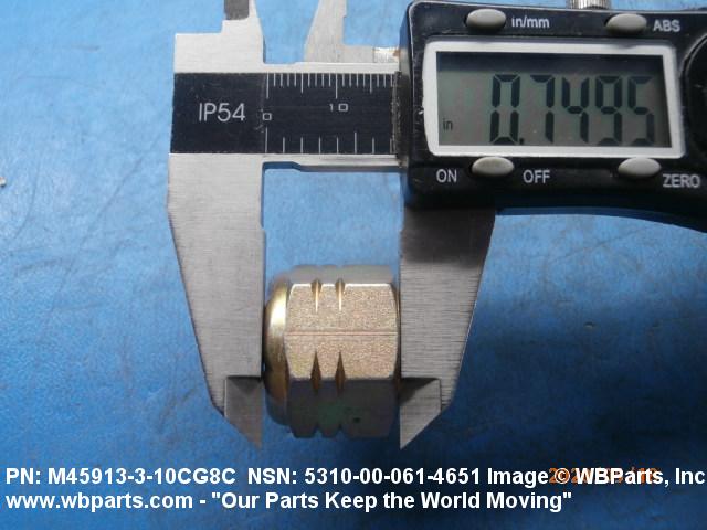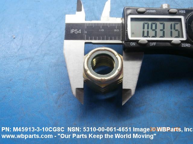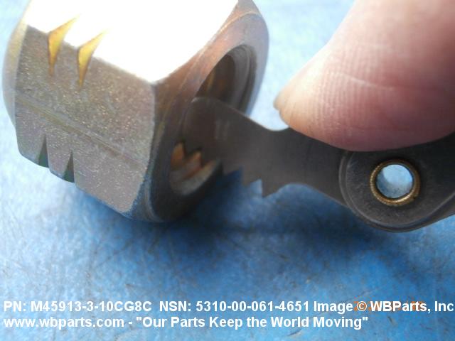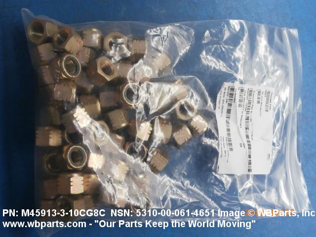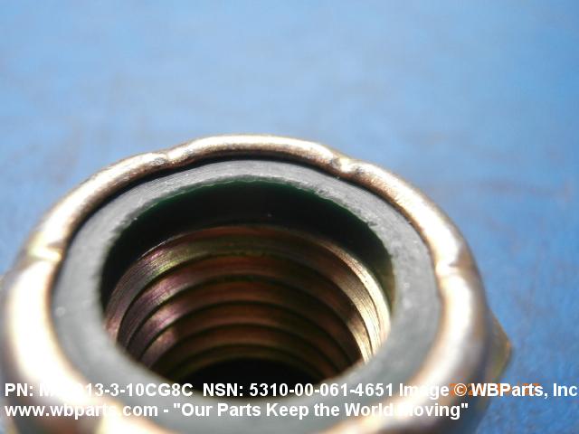 5310-00-061-4651 A nut having a flat bottom and 6 sides. An integral feature is incorporated for locking on the threads of a mating member. Excludes NUT (1), SELF-LOCKING, CAP.