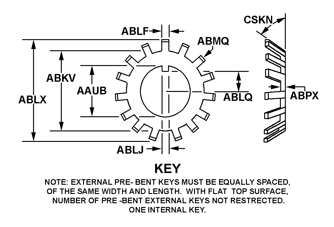 | EXTERNAL PREBENT KEY WIDTH | 0.125 INCHES NOMINAL |