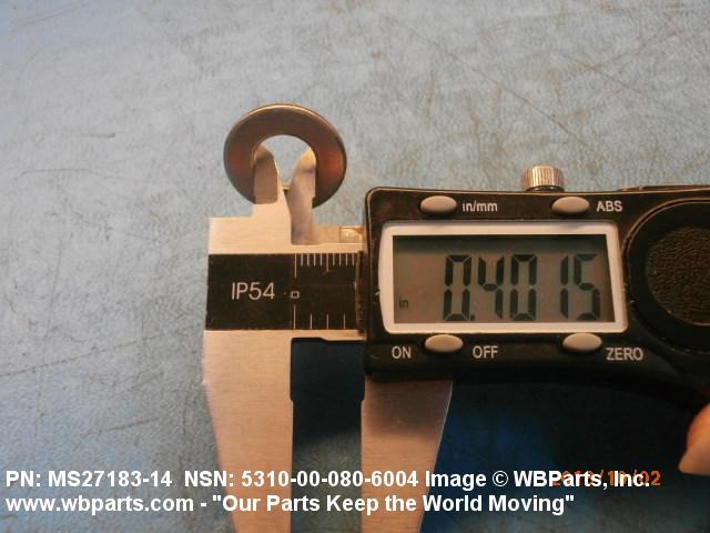 5310-00-080-6004 A washer having a centrally located hole with a solid or laminated cross-section and two flat parallel bearing surfaces. The hole must be 75 percent or less than the largest dimension and the bearing surface finish is greater than 32 microinch (0.8 micrometer). The thickness cannot exceed 25 percent of the largest outside dimension. When the largest outside dimension is less than 1/4 inch or 6mm, the thickness must be 0.006 inches (0.15mm) or greater and for items 1/4 inch (6mm) or larger, the thickness must be 0.016 inches (0.4mm) or greater. The maximum tolerance is applied to dimensions and used as a determining factor. Items with separable lamination use SHIM. For items fabricated from ceramic or electrically rated materials by specification or industry standards use INSULATOR (1), WASHER. Excludes DISK, VALVE, graphite impregnated and lubricated items.