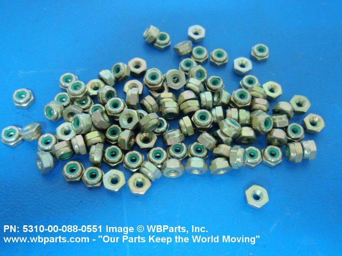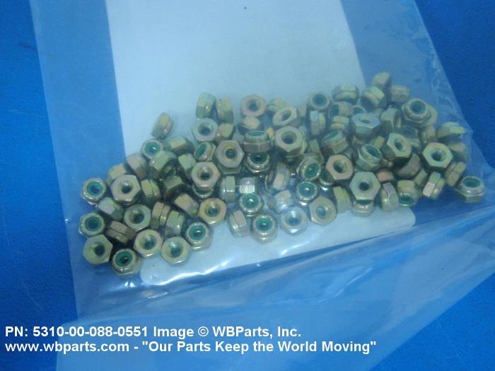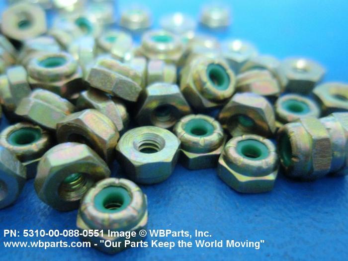 5310-00-088-0551 A nut having a flat bottom and 6 sides. An integral feature is incorporated for locking on the threads of a mating member. Excludes NUT (1), SELF-LOCKING, CAP.