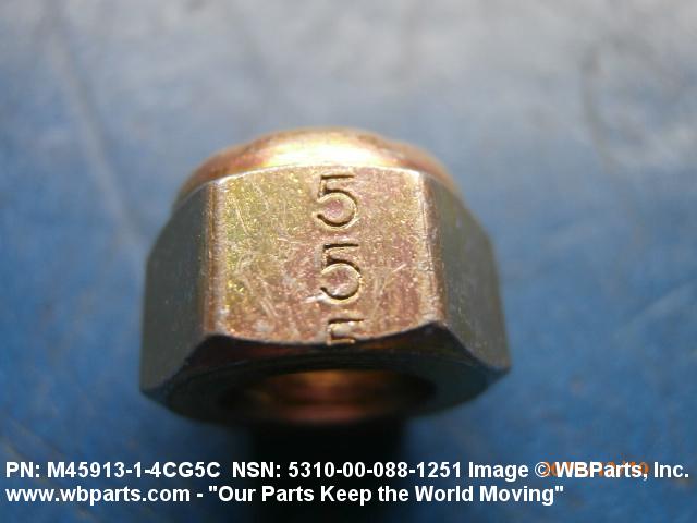 5310-00-088-1251 A nut having a flat bottom and 6 sides. An integral feature is incorporated for locking on the threads of a mating member. Excludes NUT (1), SELF-LOCKING, CAP.