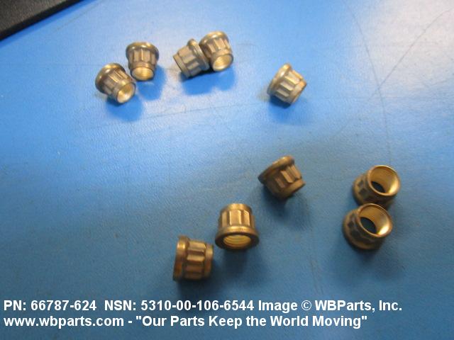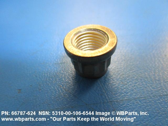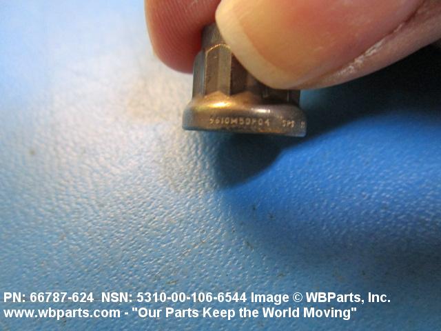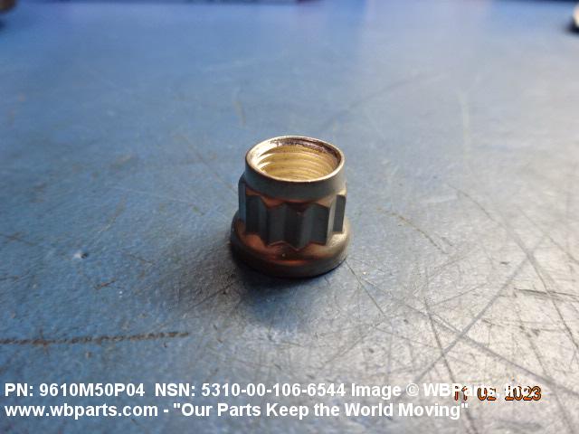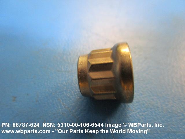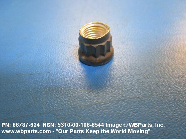5310-00-106-6544 A nut having 12 drive points, 24 sides, and an integral washer which extends beyond the points or periphery. An integral feature is incorporated for locking on the threads of a mating member.