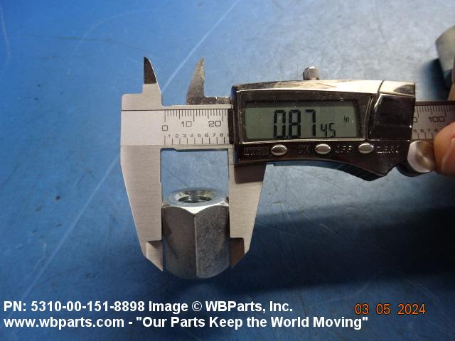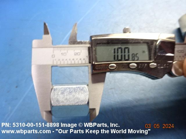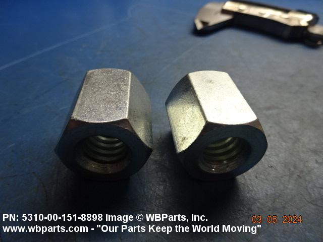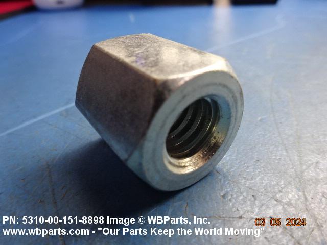 5310-00-151-8898 A nut, flat on top and bottom having 6 flat sides. For items which have internal tapered or straight (parallel) pipe threads, specific electrical conduit size designation, and which when installed, provide a method of tightening to lock the connection, see LOCKNUT, ELECTRICAL CONDUIT. See also LOCKNUT, TUBE FITTING. For items having a thickness (or height) exceeding two times the width across the flats, use POST, ELECTRICAL-MECHANICAL EQUIPMENT. (When height or thickness and/or width across the flats is designated as a tolerance dimension, the maximum dimension will be used to determine compliance.