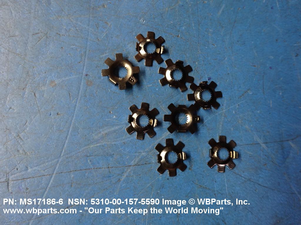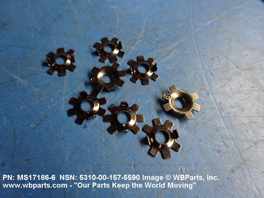 5310-00-157-5590 A washer of nonresilient material usually having two parallel bearing surfaces. The outside and/or inside edges have one or more protuberances. The ends and/or edges may be prebent at any angle or the protuberances may be prebent at any angle to the bearing surfaces. The keys or lugs may be fitted into keyways in adjacent material or they may be bent over after application to hold or lock one or more items in place. Excludes thrust type washer.