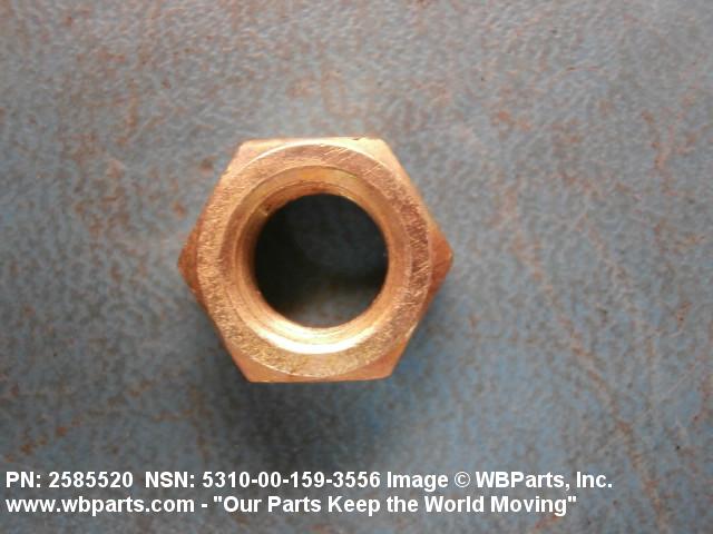 5310-00-159-3556 A nut, flat on top and bottom having 6 flat sides. For items which have internal tapered or straight (parallel) pipe threads, specific electrical conduit size designation, and which when installed, provide a method of tightening to lock the connection, see LOCKNUT, ELECTRICAL CONDUIT. See also LOCKNUT, TUBE FITTING. For items having a thickness (or height) exceeding two times the width across the flats, use POST, ELECTRICAL-MECHANICAL EQUIPMENT. (When height or thickness and/or width across the flats is designated as a tolerance dimension, the maximum dimension will be used to determine compliance.