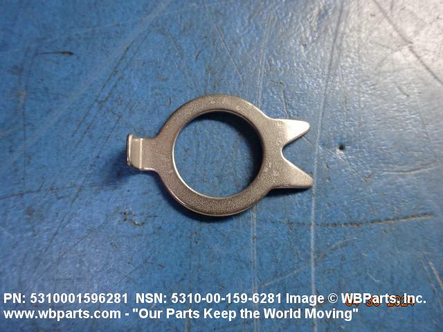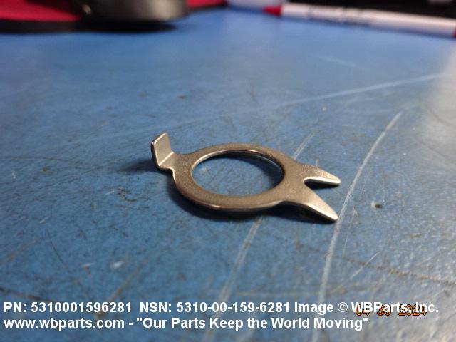 5310-00-159-6281 A washer of nonresilient material usually having two parallel bearing surfaces. The outside and/or inside edges have one or more protuberances. The ends and/or edges may be prebent at any angle or the protuberances may be prebent at any angle to the bearing surfaces. The keys or lugs may be fitted into keyways in adjacent material or they may be bent over after application to hold or lock one or more items in place. Excludes thrust type washer.