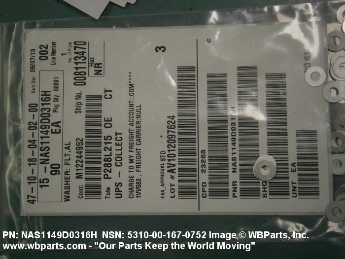 | NAS1149D0316 | 80205 | NATIONAL AEROSPACE STANDARDS COMMITTEE AEROSPACE INDUSTRIES |