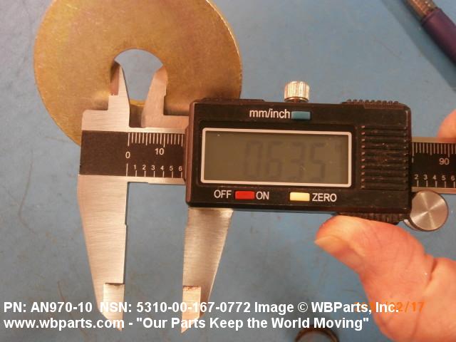 5310-00-167-0772 A washer having a centrally located hole with a solid or laminated cross-section and two flat parallel bearing surfaces. The hole must be 75 percent or less than the largest dimension and the bearing surface finish is greater than 32 microinch (0.8 micrometer). The thickness cannot exceed 25 percent of the largest outside dimension. When the largest outside dimension is less than 1/4 inch or 6mm, the thickness must be 0.006 inches (0.15mm) or greater and for items 1/4 inch (6mm) or larger, the thickness must be 0.016 inches (0.4mm) or greater. The maximum tolerance is applied to dimensions and used as a determining factor. Items with separable lamination use SHIM. For items fabricated from ceramic or electrically rated materials by specification or industry standards use INSULATOR (1), WASHER. Excludes DISK, VALVE, graphite impregnated and lubricated items.