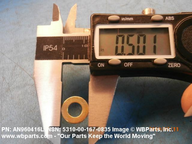 5310-00-167-0835 A washer having a centrally located hole with a solid or laminated cross-section and two flat parallel bearing surfaces. The hole must be 75 percent or less than the largest dimension and the bearing surface finish is greater than 32 microinch (0.8 micrometer). The thickness cannot exceed 25 percent of the largest outside dimension. When the largest outside dimension is less than 1/4 inch or 6mm, the thickness must be 0.006 inches (0.15mm) or greater and for items 1/4 inch (6mm) or larger, the thickness must be 0.016 inches (0.4mm) or greater. The maximum tolerance is applied to dimensions and used as a determining factor. Items with separable lamination use SHIM. For items fabricated from ceramic or electrically rated materials by specification or industry standards use INSULATOR (1), WASHER. Excludes DISK, VALVE, graphite impregnated and lubricated items.