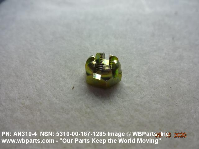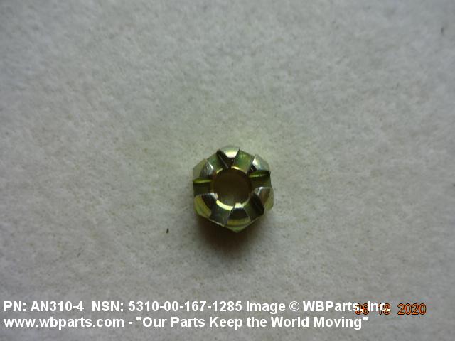 5310-00-167-1285 A nut having 6 flat sides, flat on the bottom and having a slotted cylindrical or dome shaped upper portion. It is designed to provide positive locking when used with a solid or split (cotter) pin. Excludes NUT (1), PLAIN, SLOTTED, HEXAGON.